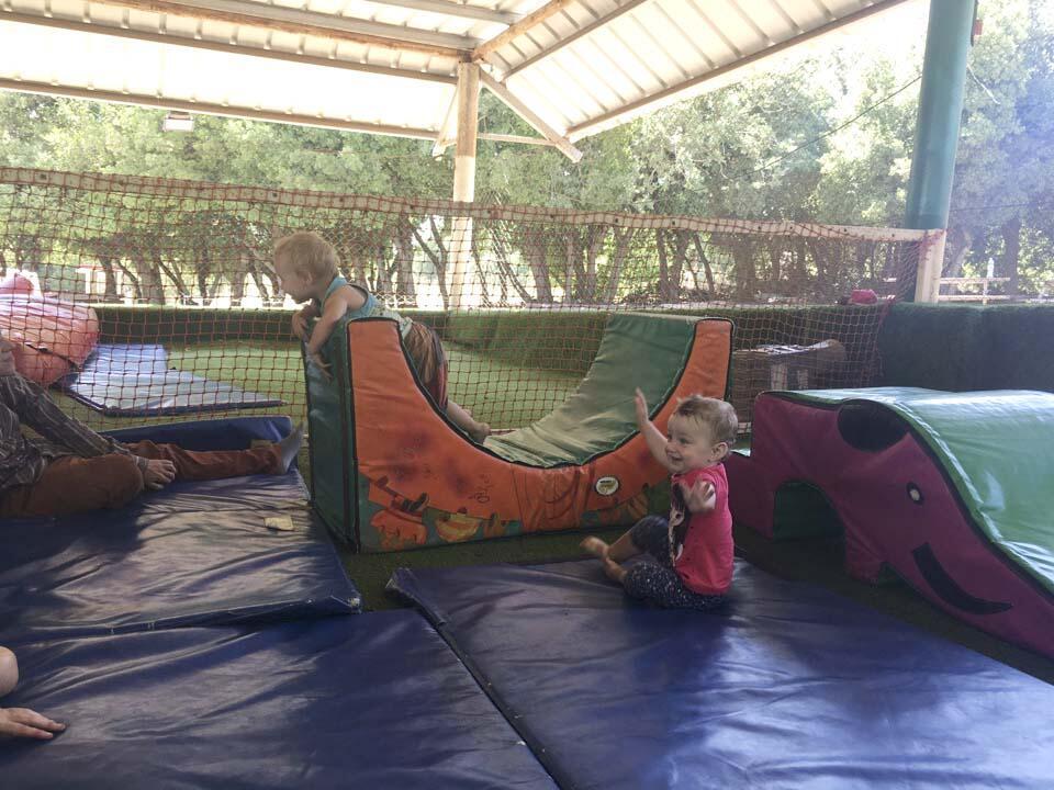 Потом мы поехали в Олений лес . Этокибуц, здесь есть олени, а также джимбори для детей разных возрастов. Меня позабавило то, что дети скачут на батутах, носятся, строят домики из резиновых блоков, а взрослые…спят на матах. Видимо, разморило в лесу.