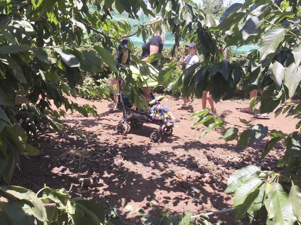 Рядом был сбор черешни – развлечение, когда можно зайти на плантации и до отвала наесться черешней. Если хотите привезти ягоды домой, то можете собрать в ведерки черешню и купить на выходе все, что нажито вполне посильным трудом. В сборе черешни участвуют и дети разных возрастов. Некоторые только-только выписались из роддома, а уже гуляют под палящим солнцем в коляске или слинге, пока мама ест черешню и болтает с родственниками. Где еще можно такое увидеть?