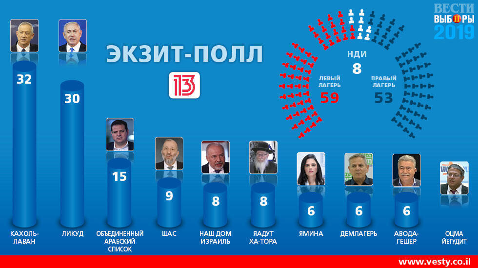 Таким образом левоцентристский блок совместно с арабскими списками поднимается до 59 мандатов, а праворелигиозный - всего до 53. НДИ сохраняет те 8 мандатов, которые им отводились предыдущим прогнозом.