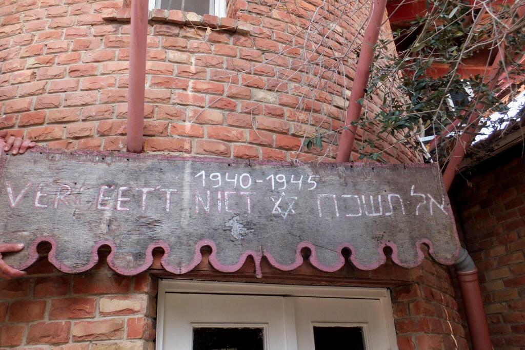 На входе он повесил табличку на иврите и голландском: "Не забудь 1940-1945" - годы оккупации Нидерландов.