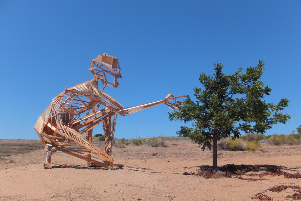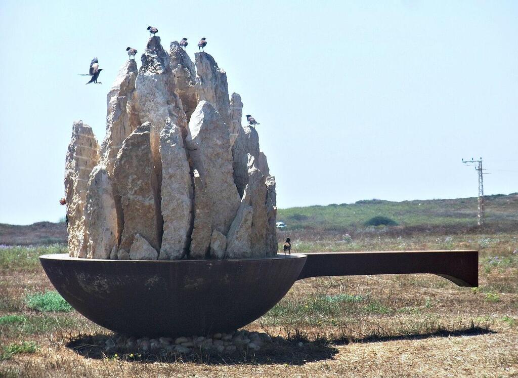 На самом деле это экспонат скульптурного парка, расположенного на обширной территории поселения Арсуф-Кедем. Автор многих работ, да и вдохновитель парка в целом - Дов Мангейм. 30 лет назад он создал творческий коллектив "Зеленая группа", в который вошли как израильские скульпторы, так и мастера этого жанра из разных стран мира.