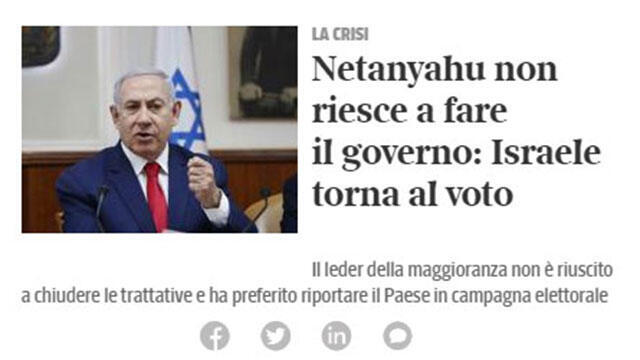Европейские издания объяснили своим читателям, что последняя драма вызвана стремлением Нетаниягу удержаться у власти любой ценой и спецификой израильской парламентской системы. Французская газета "Ле Монд" отметила, что даже арабские депутаты проголосовали вместе с правыми за роспуск кнессета. А испанская пресса назвала произошедшее "мыльной оперой". Итальянские СМИ четко прописали, что Нетаниягу "на этот раз не смог добиться компромисса между Либерманом и ортодоксами".