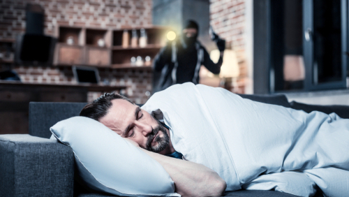 В это время хозяин дома спал на диване. Он проснулся от шума. Один грабитель заметил, что хозяин не спит, подскочил к нему, опрыскал перечным газом из баллончика и дал сильный удар кулаком.