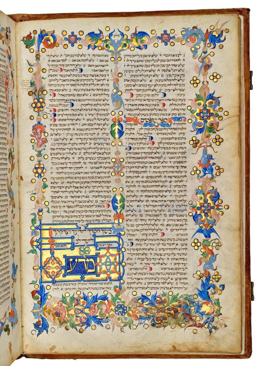 Великолепная рукопись "Мишне Тора" Рамбама, выполненная в Провансе в XIV веке и богато иллюстрированная золотыми орнаментами, впервые будет представлена широкой публике на выставке "Сокровищница слов" в Национальной библиотеке в Иерусалиме. Как стало известно в пятницу, 5 декабря, в экспозицию также войдут редкий молитвенник последних еврейских изгнанников Португалии, персидская книга поэзии "Лейла и Меджнун", первая печатная пасхальная Агада в мире и другое.